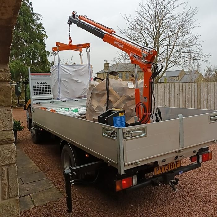 We will unload via a small crane attached to the rear of our pick-up truck and move the bag on a sack barrow to your desired delivery point. An excellent method for those deliveries that do not require lifting over obstacles and for those that are looking for something more than our smaller options. Please note we are unable to lift up or down steps.